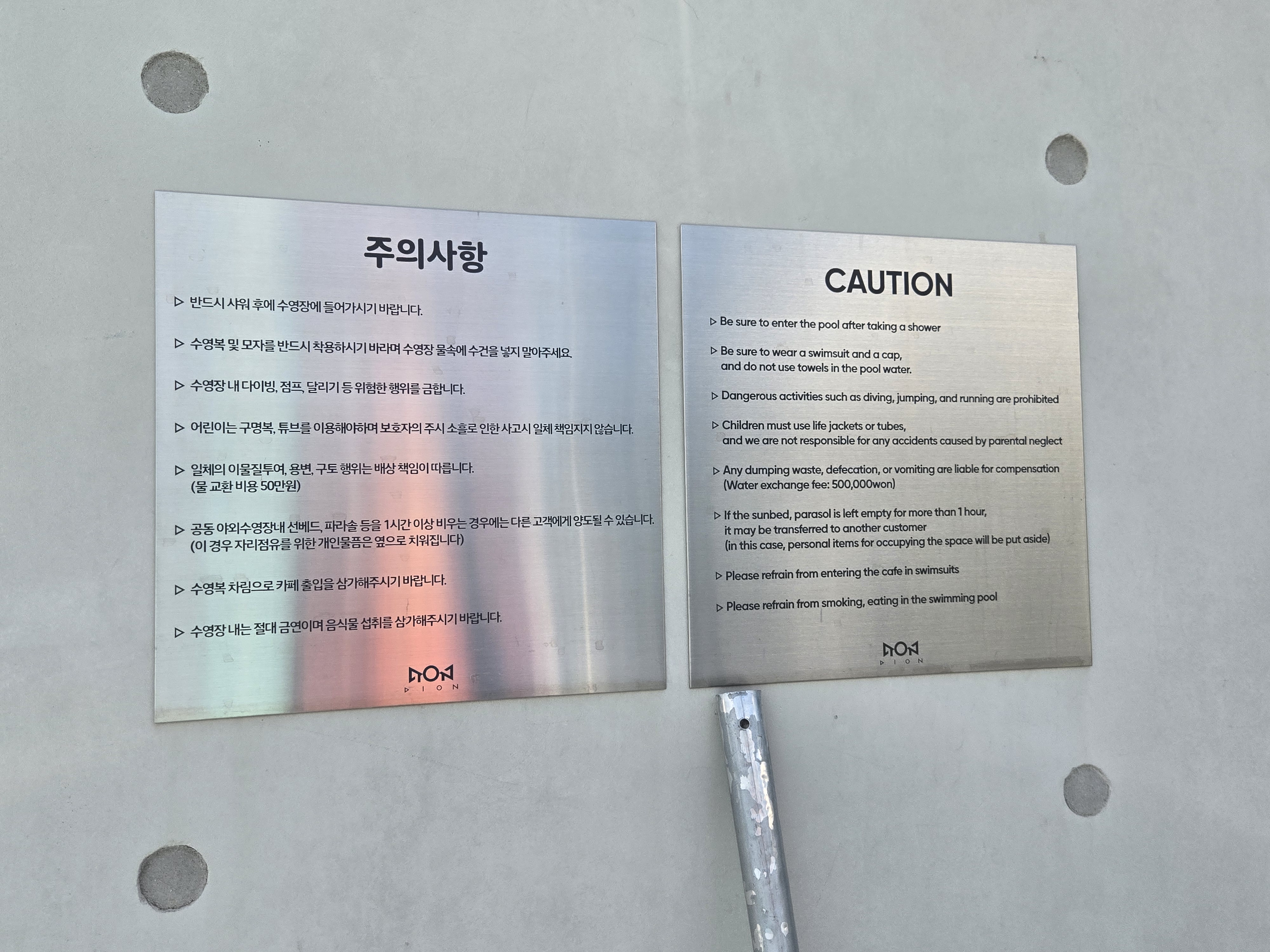 수영장 이용시 주의사항이 적혀있었습니다.