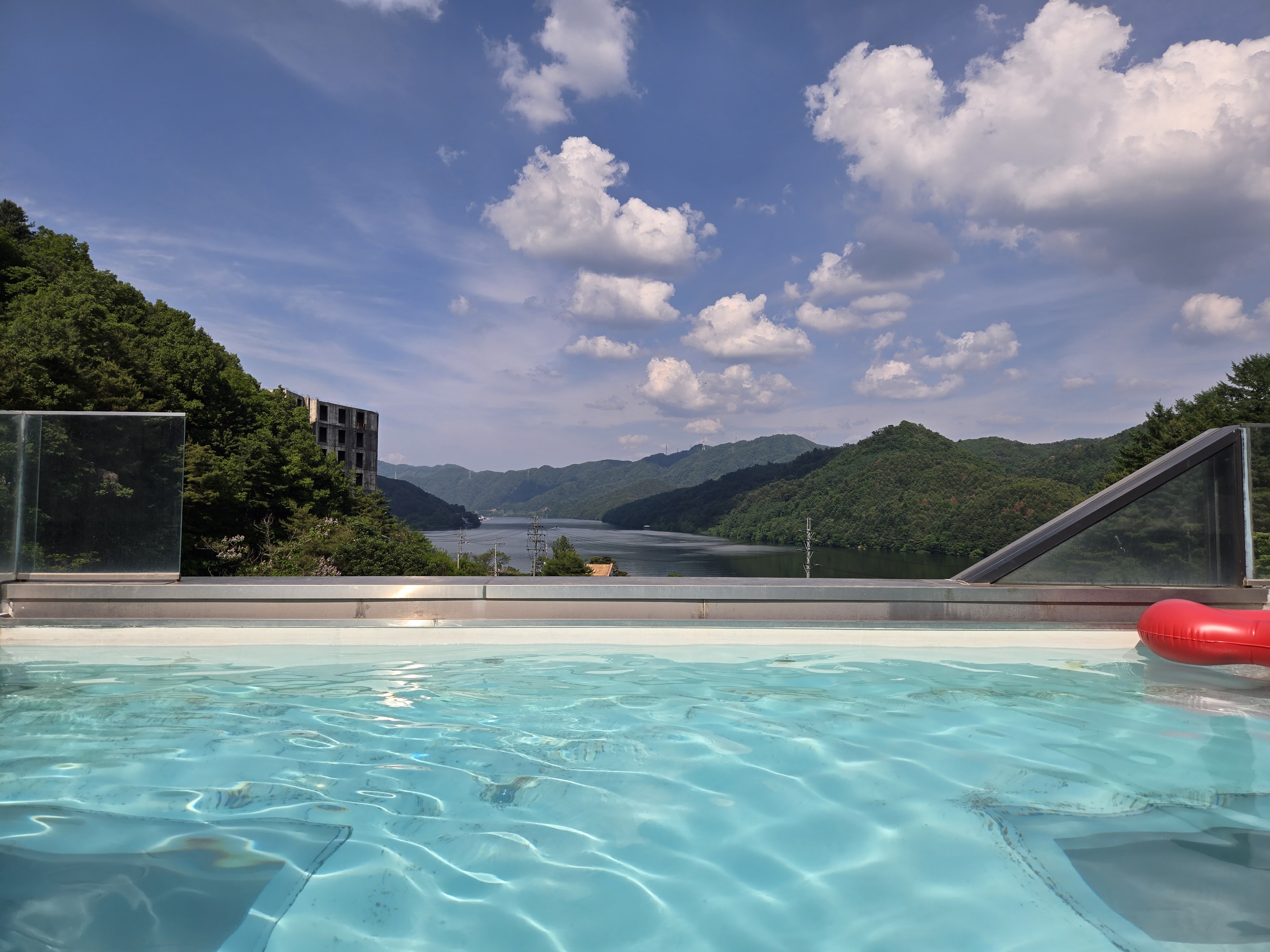 북한강 뷰의 인피니티풀 수영장 카페에서 수영을 즐겨보았는데요~