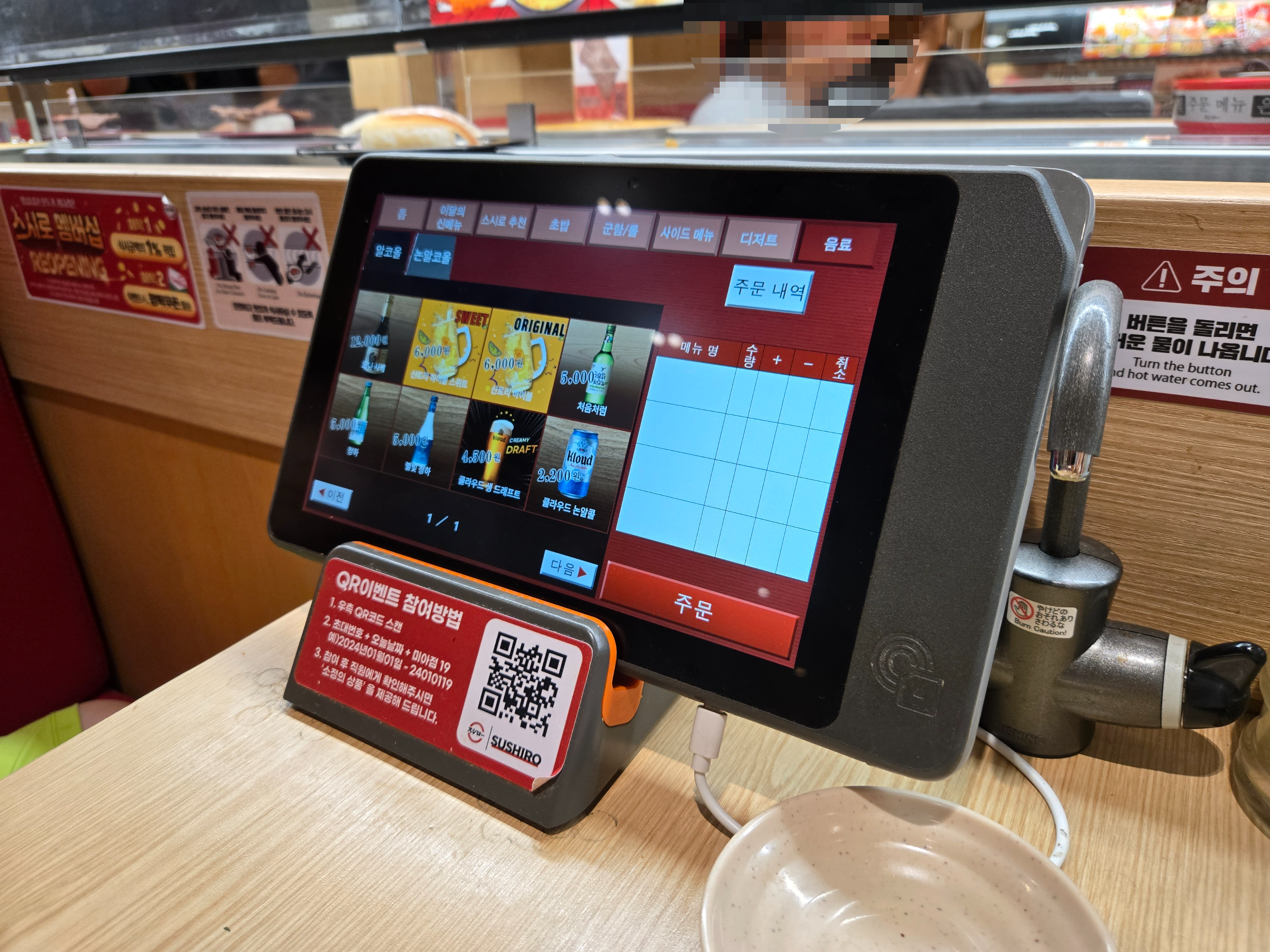 미아사거리역 맛집 스시로는 자리마다 있는 태블릿을 통해 원하는 회전초밥 메뉴를 주문하면 됩니다.