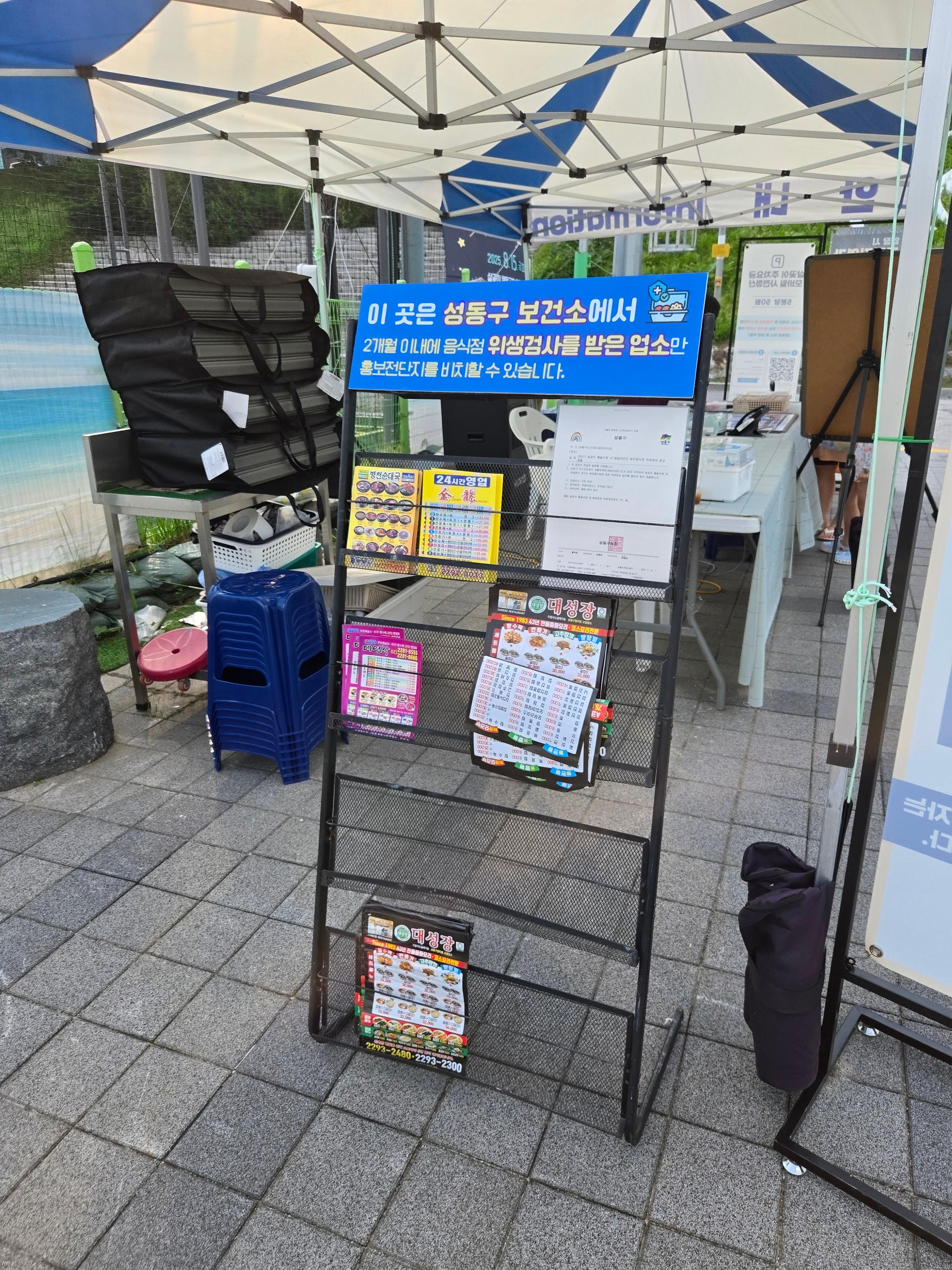 배달음식을 먹을 수 있는데, 성동구 보건소에서 2개월 이내에 위생검사를 받은 업소 홍보전단지가 비치되어 있었습니다.