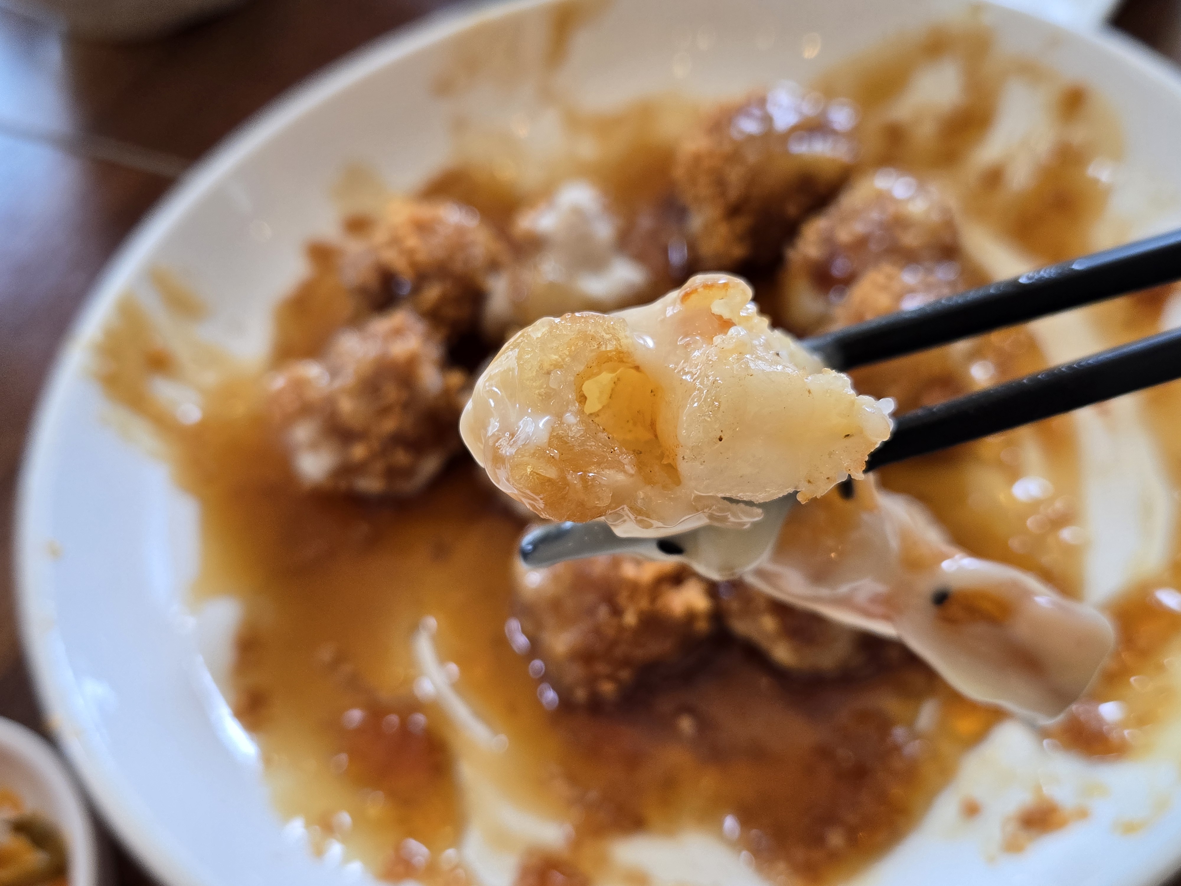 동글동글하게 먹기 좋은 크기로 겉바속촉으로 튀겨낸 찹쌀탕수육에