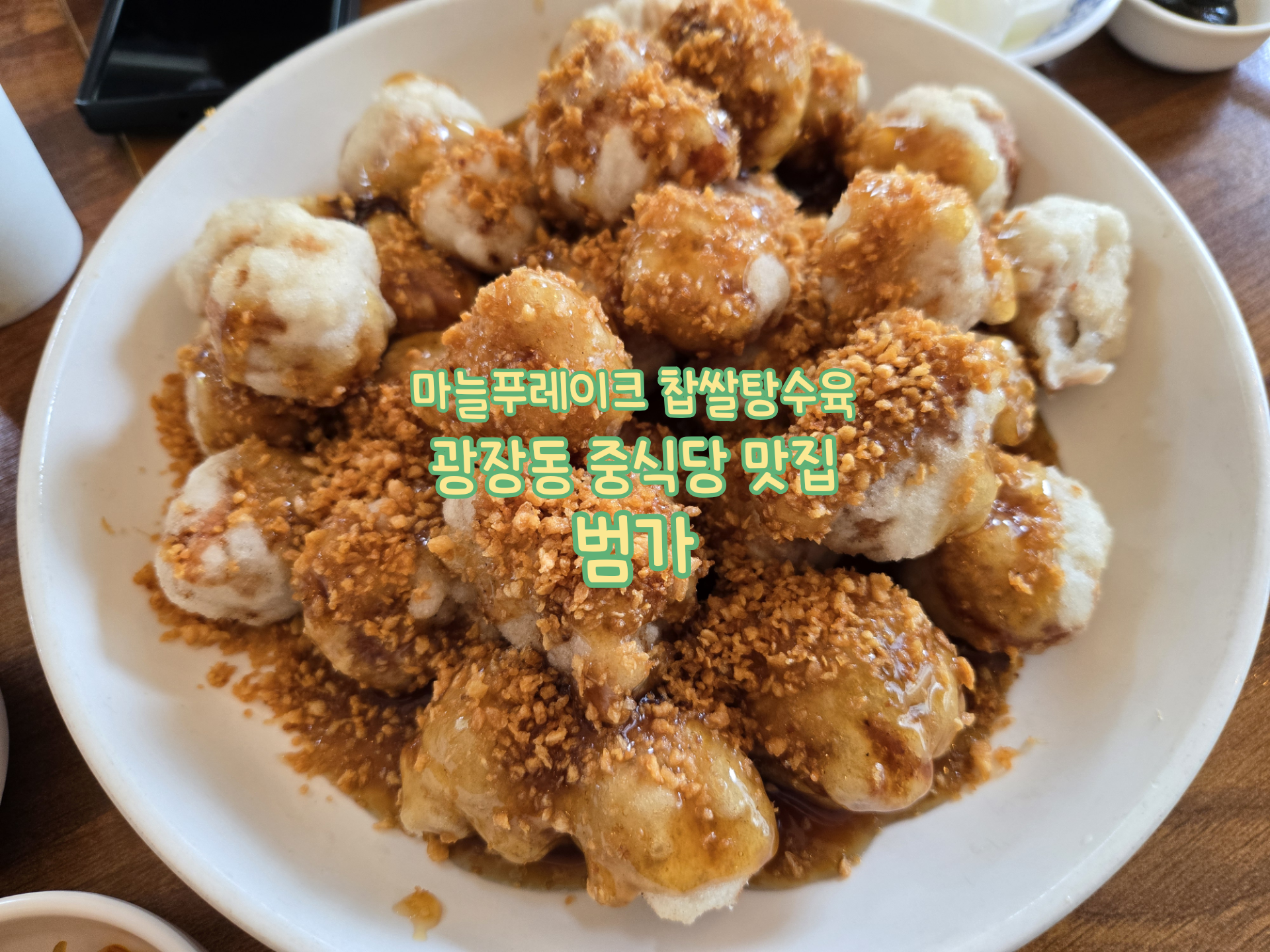 제일 먼저 나온 메뉴는 바로 시그니처 메뉴인 마늘푸레이크 찹쌀탕수육이었습니다.